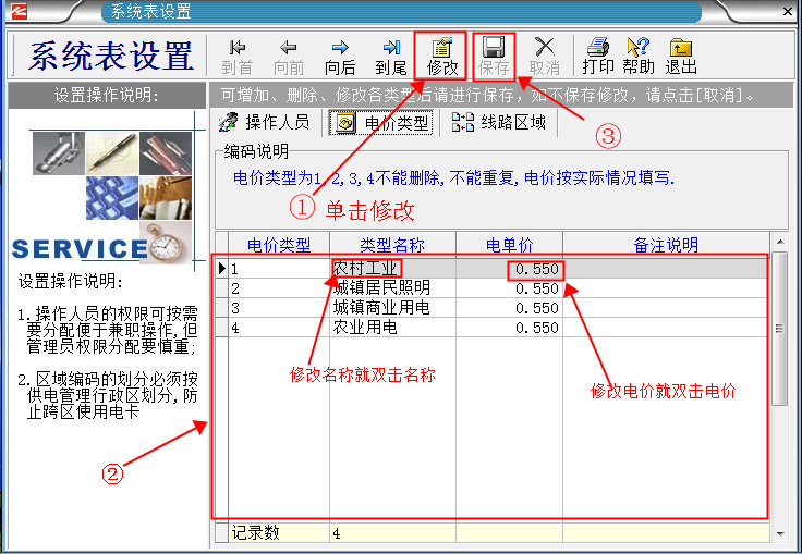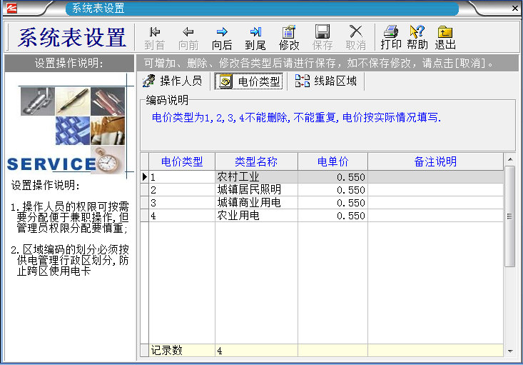 操作人員設(shè)置好之后,設(shè)置電價(jià)