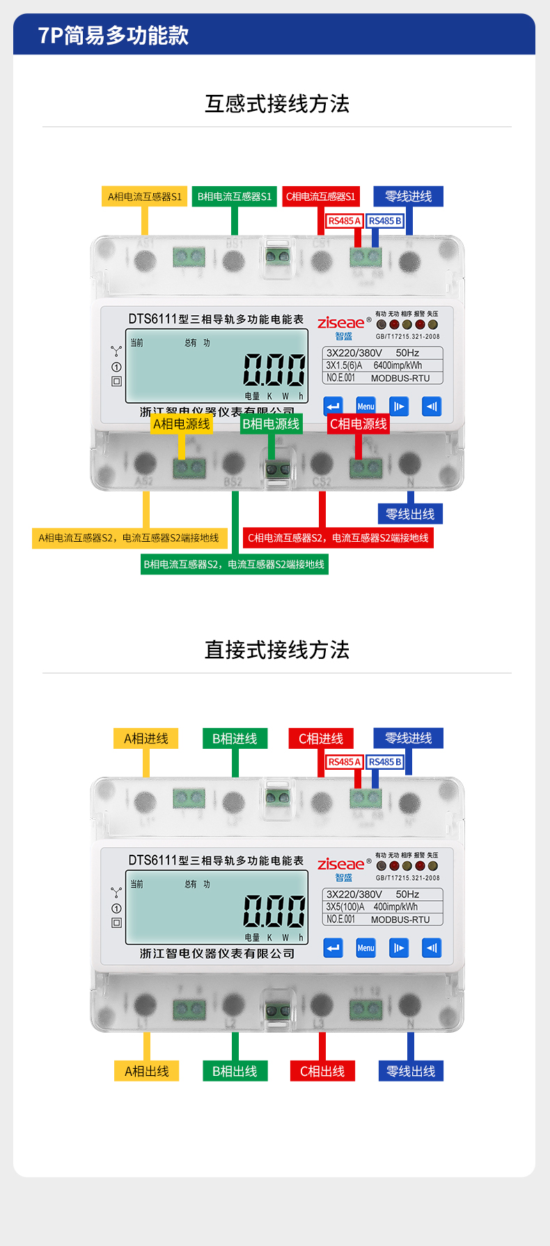 DTS6111、DSS6111型三相導(dǎo)軌式簡易多功能電能表(7P)