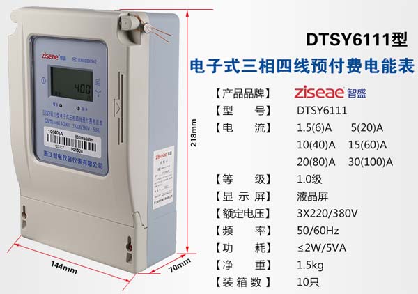 DTSY6111三相預(yù)付費電表系我公司采用集成電路,16位A/D轉(zhuǎn)換、數(shù)字乘法器、應(yīng)用數(shù)字采樣處理技術(shù)并由單片機處理系統(tǒng)進行數(shù)據(jù)的采集、處理和保存及應(yīng)用SMT工藝制造的新型儀表。適用于計量額定頻率為50Hz或60Hz的三相三線或三相四線交流電網(wǎng)中有功電能的消耗。
